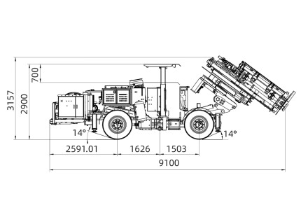 2.Flexibility: The whole machine has a compact structure, multi-gear driving speed is adjustable, four-wheel drive, strong power in small and medium-sized tunnels with various complex working conditions, flexible moving and turning; articulated engineering chassis, detachable, suitable for narrow tunnels, mine tunnels and mines without ramps and other working environments.