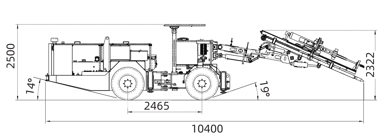 7.Pneumatic slag removal, water mist dust suppression system, meet the requirements of damp and closed underground dust removal.