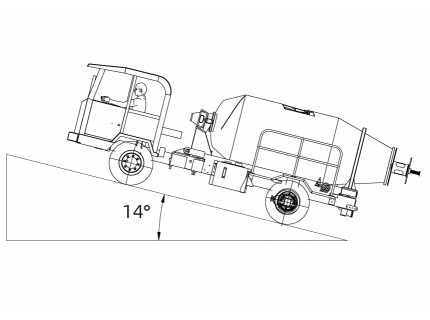 5.The mixing tank is placed horizontally on the frame during transportation, and the tail end of the tank is equipped with a hydraulic lifting device, which can adjust the discharge height according to the needs of the site; an automatic guide ball is installed between the manual discharge handwheel cover plate, which can realize the easy opening and closing of the tank cover plate.